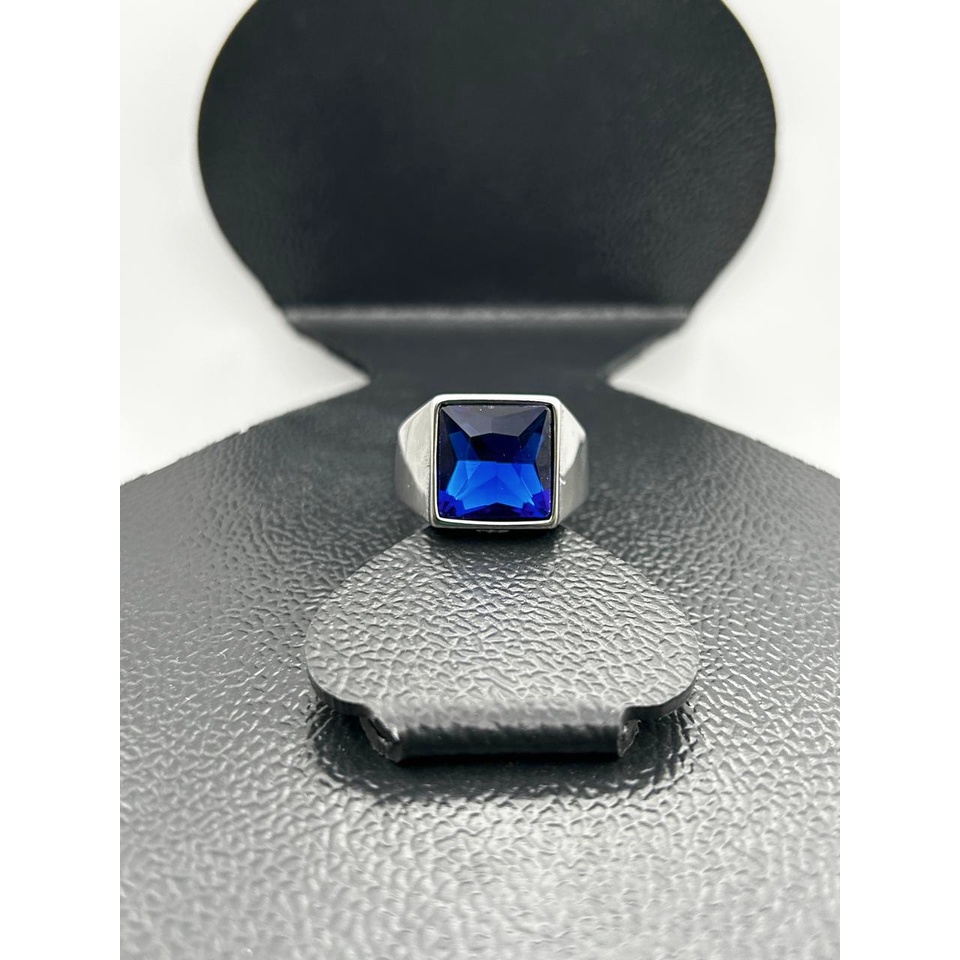 Anel Masculino Dedeira Em Aço Inoxidável Com Padrão Quadrado Anel Cravejado De Zircônia Azul