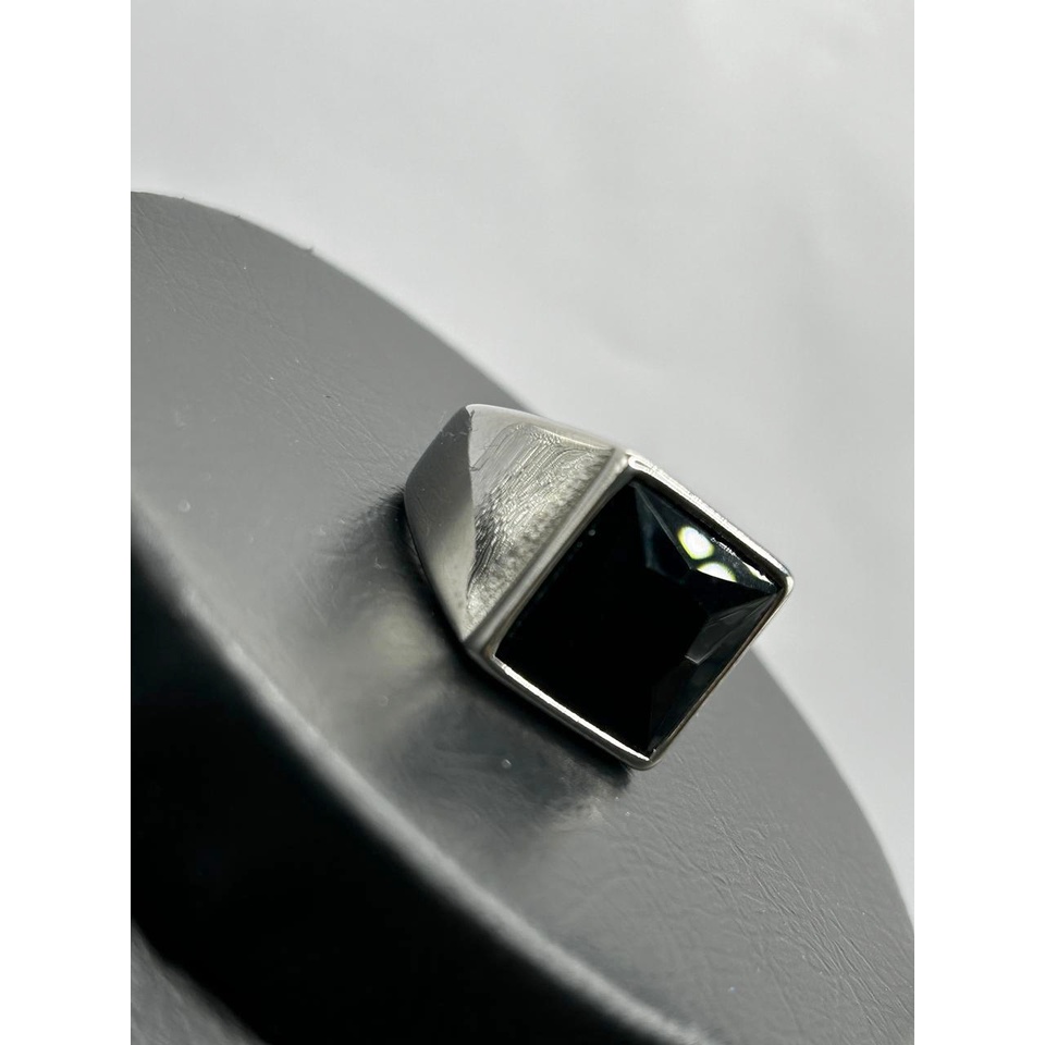 Anel Masculino Dedeira Em Aço Inoxidável Anel De Prata Cravejado De Pedra Preciosa Preta
