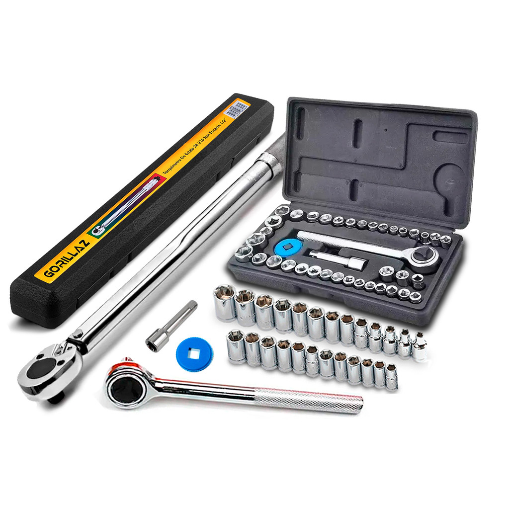 Torquimetro De Estalo2,8 A 21kgf + Kit Soquete 1/4 40 Peças