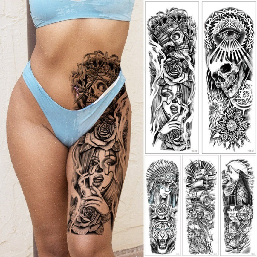 Transferência Temporária De Água Tatuagens Temporárias Manga Do Braço Cheio Coxa Mulheres sexy Arte Corporal Pintura Grande Tatuagem Flores Falsas Crânio De Rosas De Peixe
