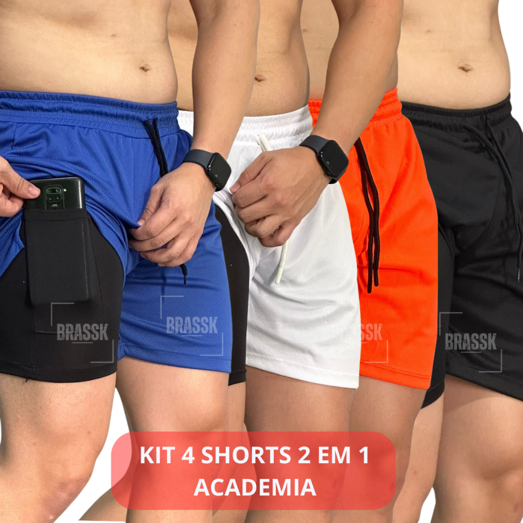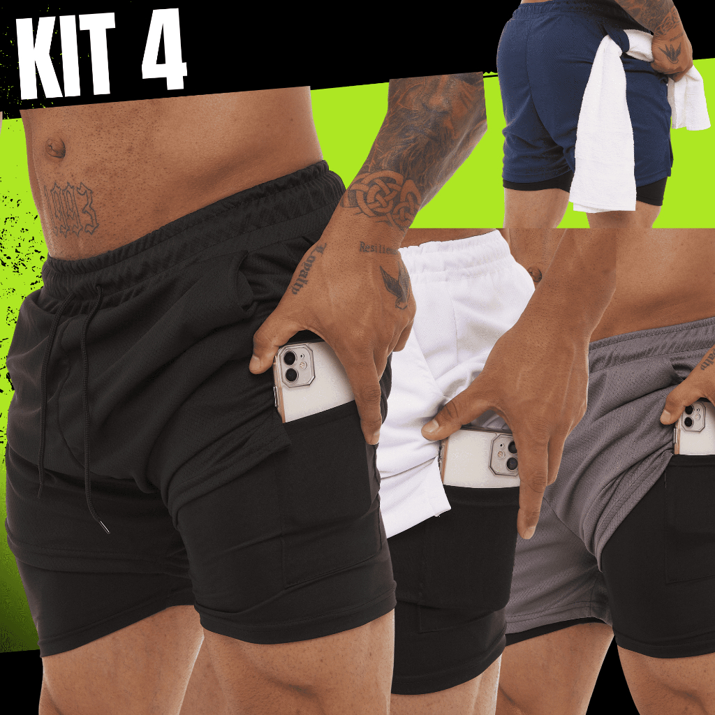 KIT 4 Shorts 2 Em 1 RUN Masculino Academia Treino Corrida Com Elastano