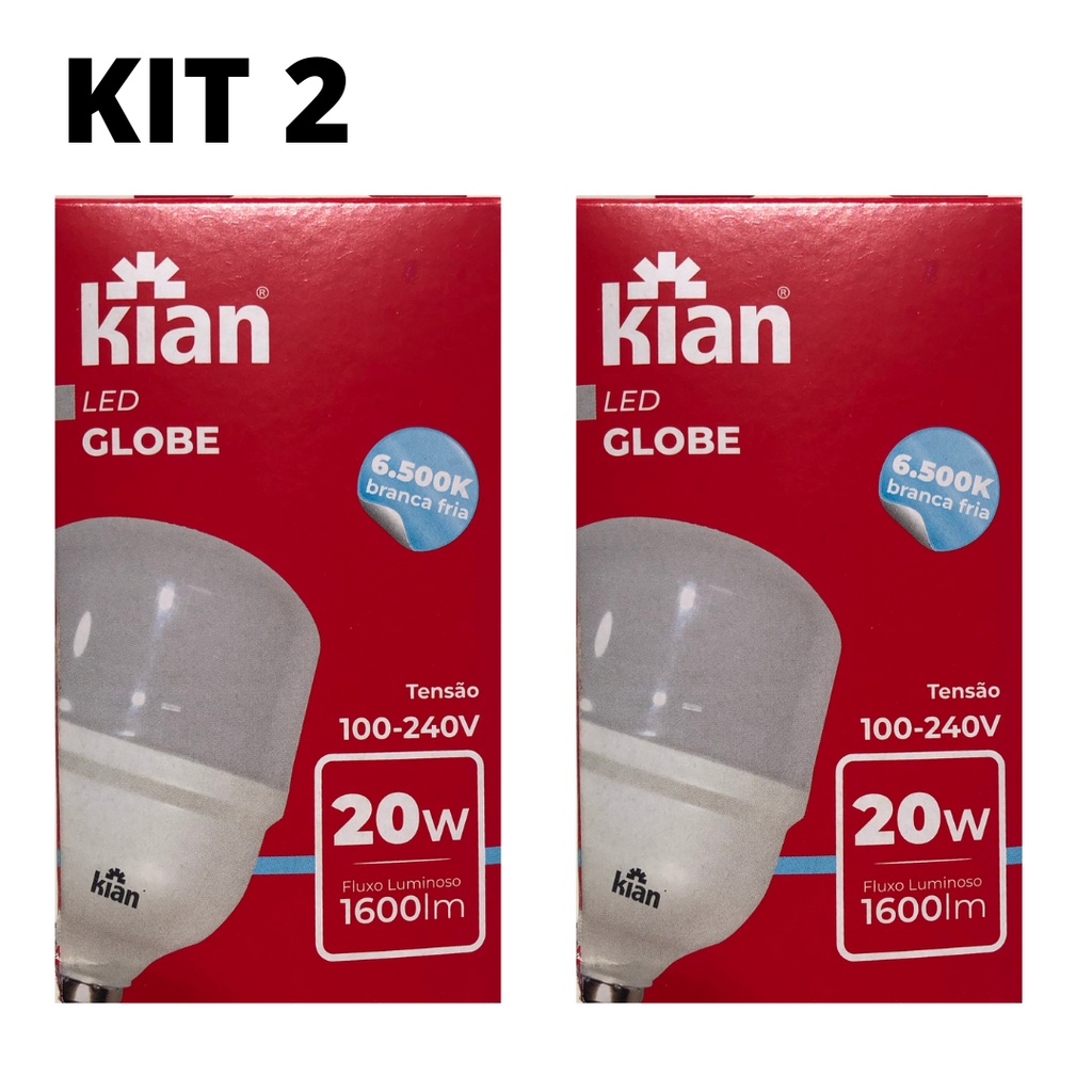 Kit 2 Lâmpadas LED Globe 20w Economica Alta Potência Luz Branca Fria 6500k