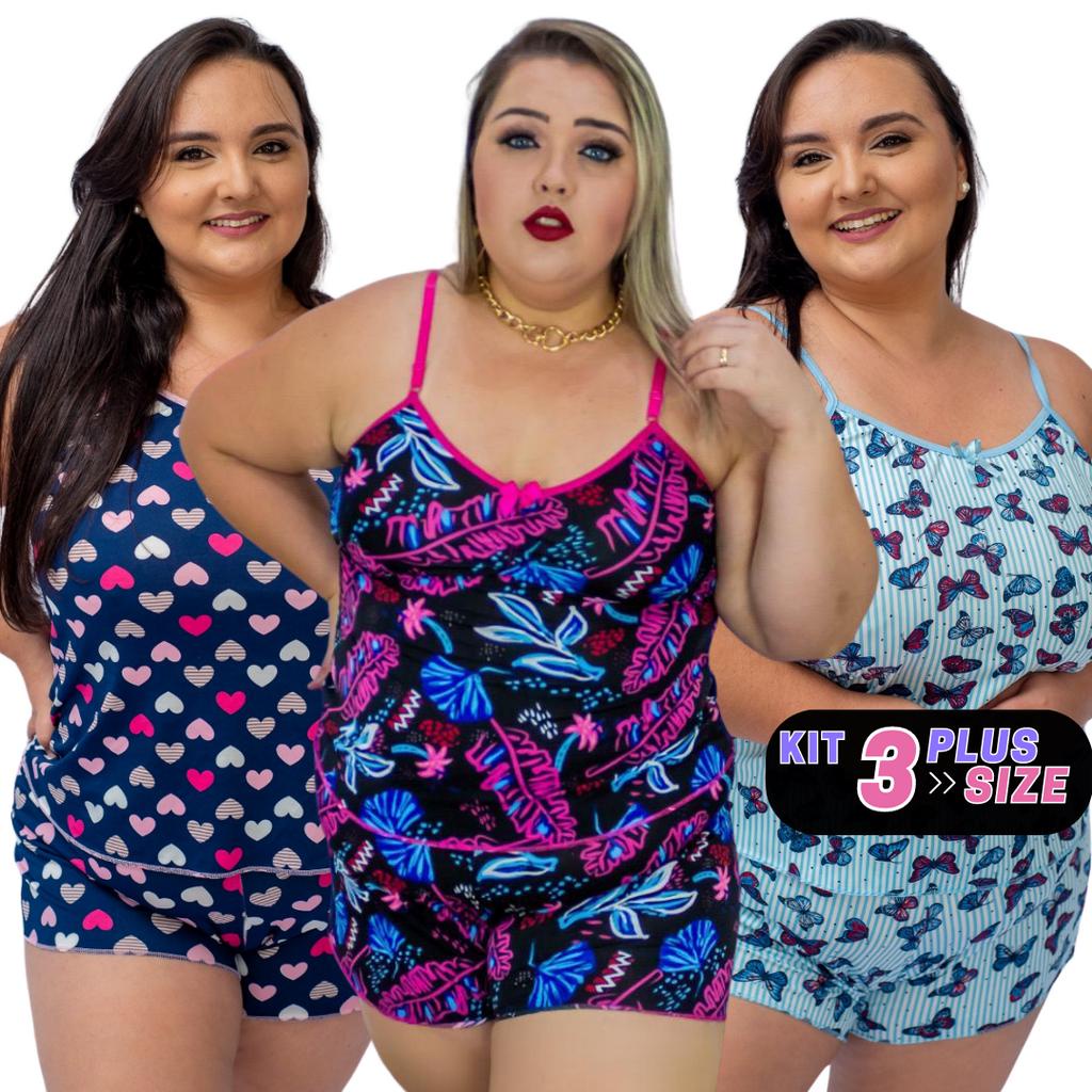 Kit 3 Baby Doll Feminino Plus Size Pijama Plus Size Malha Leve e Fria