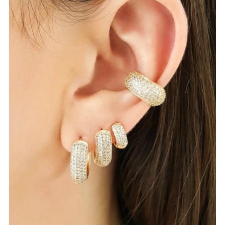 Kit com 3 pares de Brincos Argolas com Strass para segundo e terceiro furos Folheados - 3 tamanhos Prata/Dourado