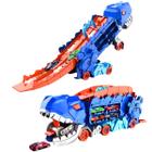 Caminhão Dinossauro 4 em 1 com pista e lançador, 6 carrinhos de metal