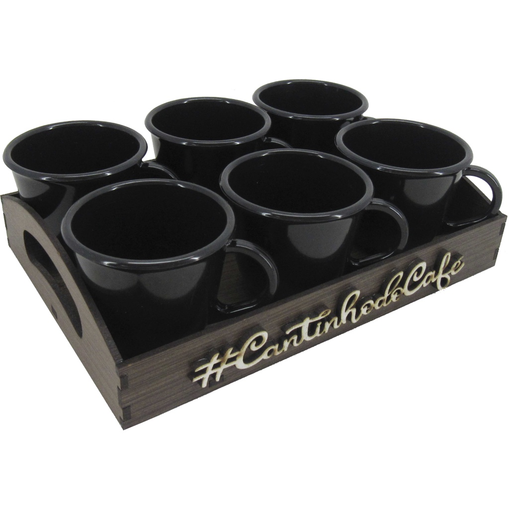 Kit 6 Xícaras Acrílica Preta Com Bandeja Cantinho do Café - SHOPPING DO MDF