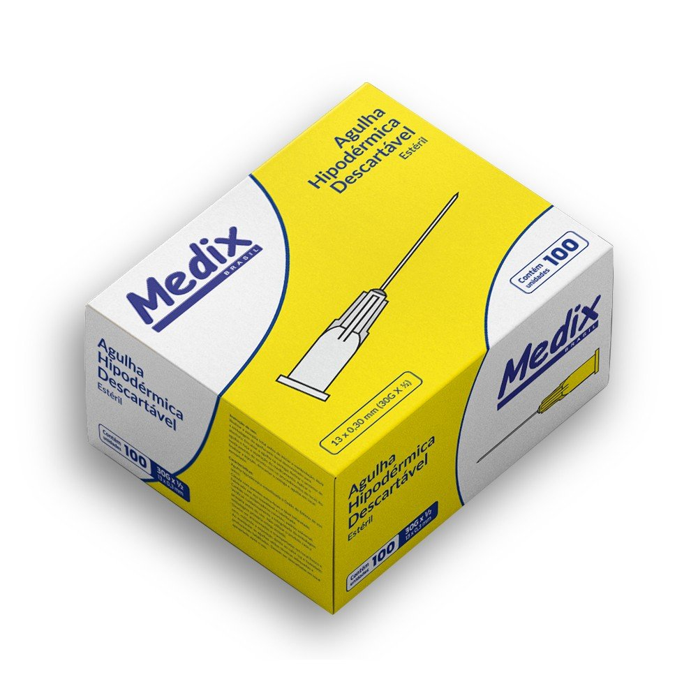 AGULHA HIPODéRMICA DESCARTáVEL COM 100 - MEDIX 13 X 0,30 MM 30G 1/2 AMARELO