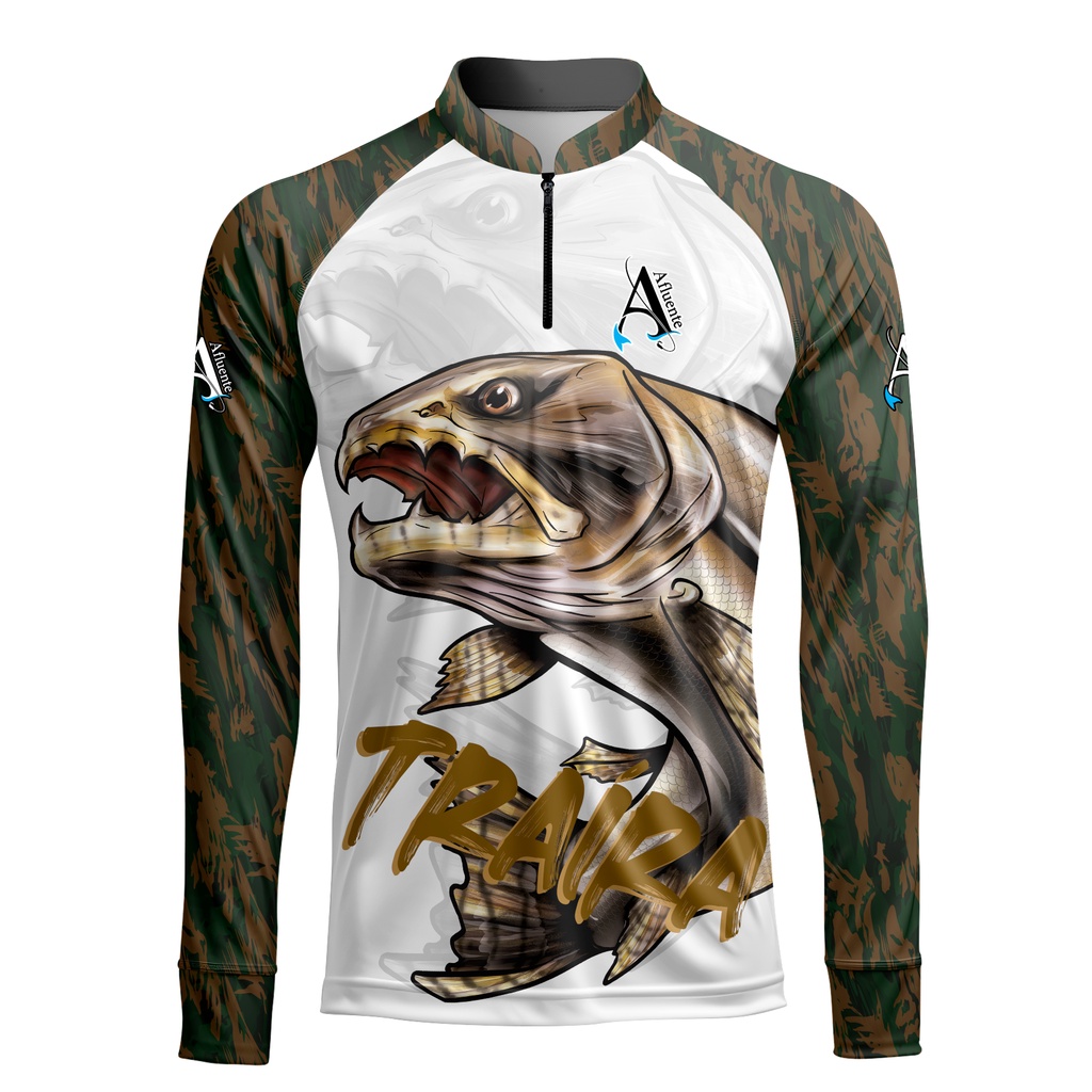 Camisa de Pesca Traira Proteção Solar UV50+ Trairão Com Gola e Zíper