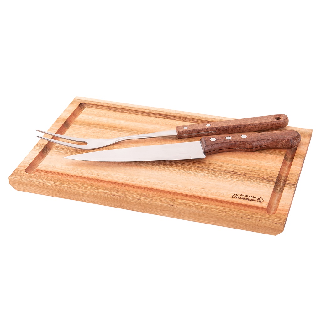 Kit Churrasco 3 Peças Garfo Faca Inox Tábua Domama Essence
