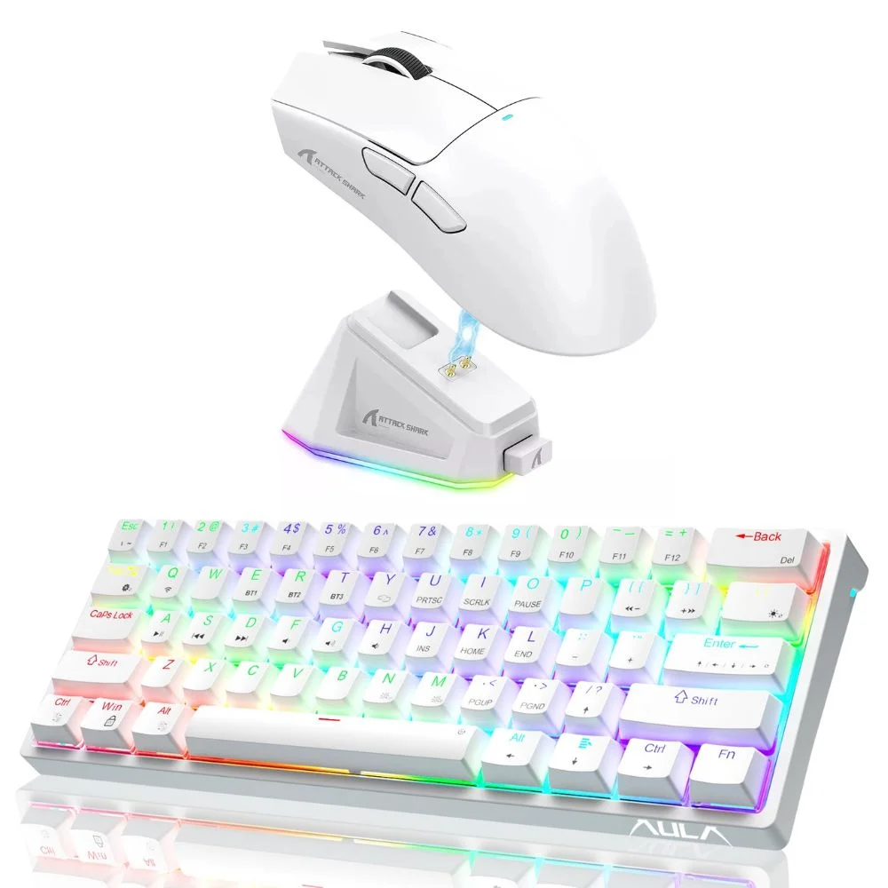 Kit Gamer Teclado Mecânico Aula 60%+ Attack Shark X11 Branco