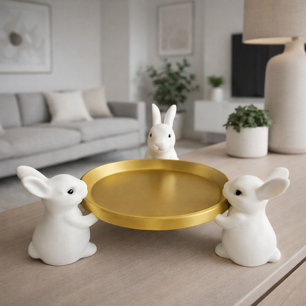 Bandeja Decorativa Coelhos Páscoa Mesa Posta I Centro de Mesa Decoração Temática Sala Enfeite Coelhinho minimalista