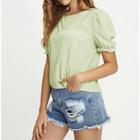 Blusa Feminina Manga 3-4 Princesa Novas Cores Verão Candy Tecido Crepe Duna Alfaiataria Elegante Social Básica Verde Natal