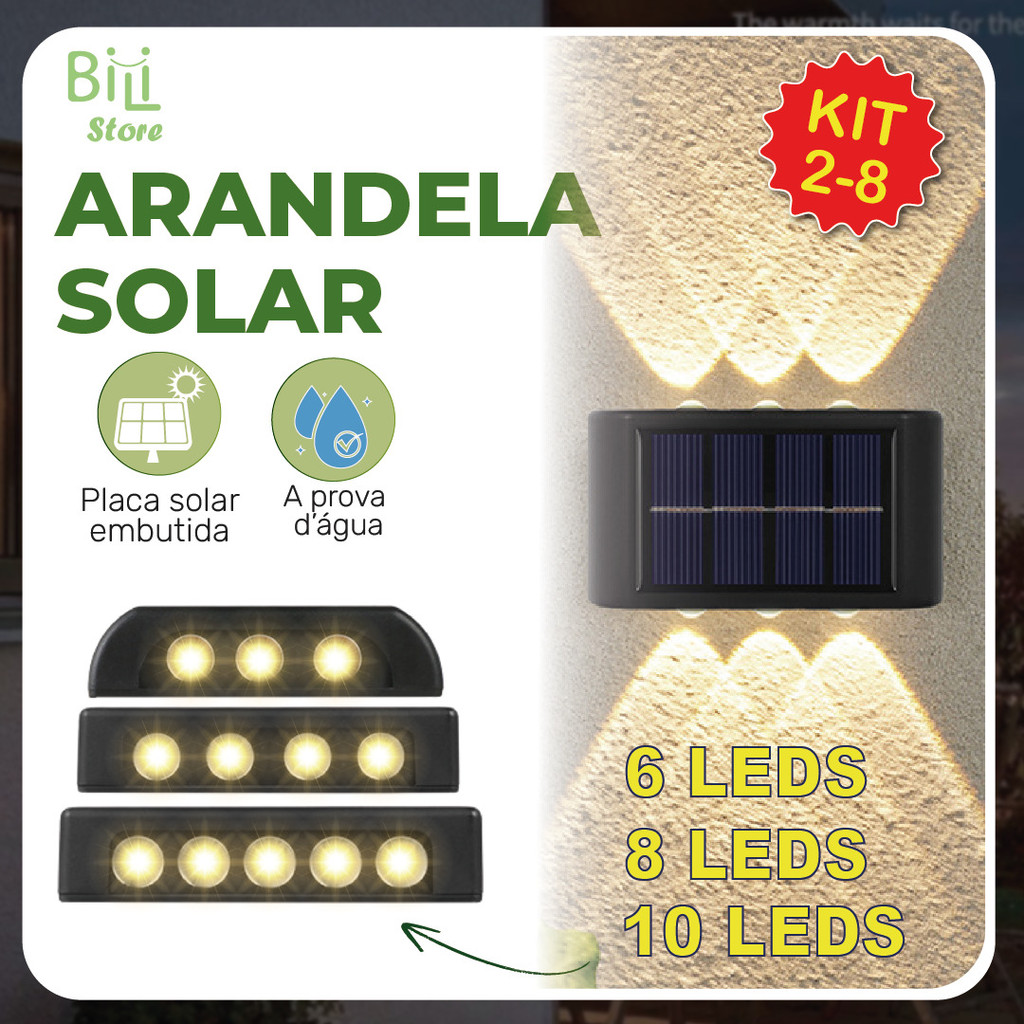 Kit 8 Luminária Arandela Solar 6 8 e 10 LED Luz Branco Quente para Parede a Prova dágua Spot parede