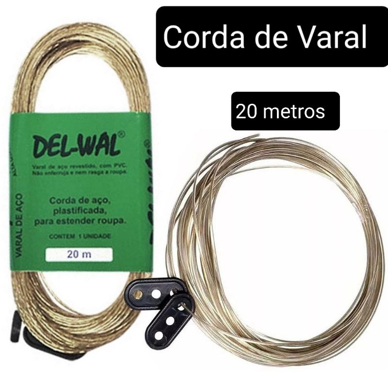 Corda Para Varal De Roupas 20 Metros Fio de Aço Revestido em PVC 2,5mm Super Resistente