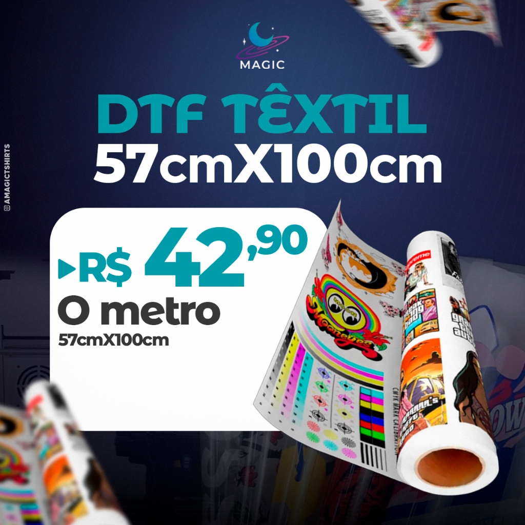 DTF Têxtil Direct to Film 57cmx100 Impressão de Alta Qualidade I3200 Para Estamparia Blusas, camisetas e Bonés