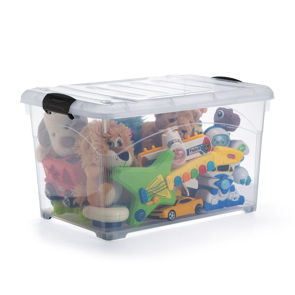 Caixa Organizador 95 Litros Com Tampa Travas Rodizios Grande Preta e Transparente