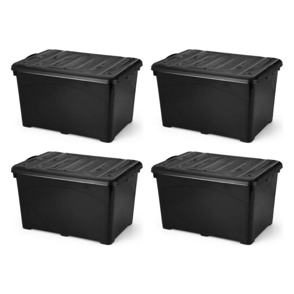 Kit 04 Caixa Organizadora HeavyBox 95 Litros Com Rodas e Travas na Tampa - Promoção