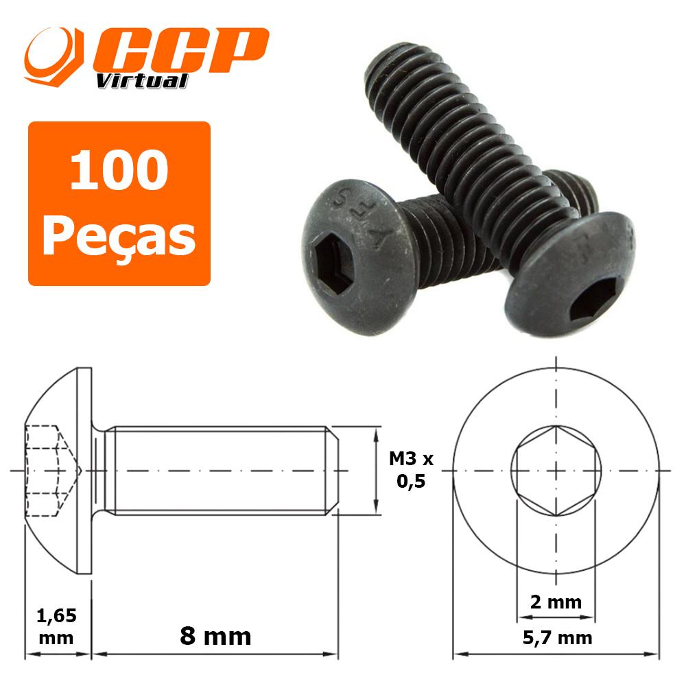 Parafuso Allen Aço Liga Cabeça Abaulada M3 x 8 - 100 Peças