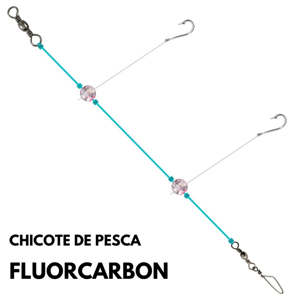 Chicote de Pesca em Fluorcarbon para Isca Natural p/ 2 Anzóis