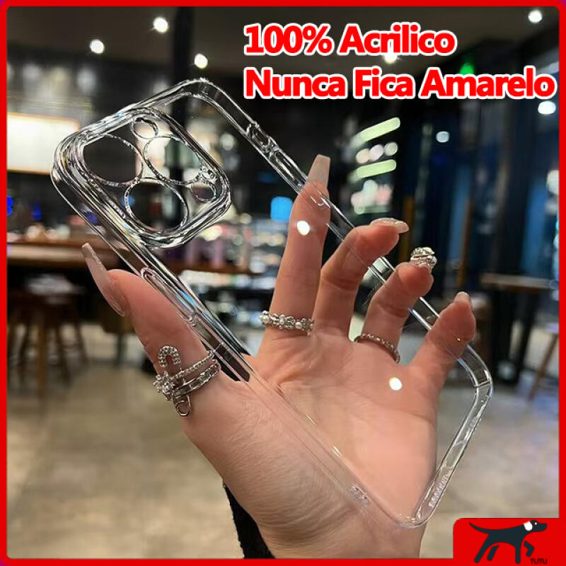 【Nunca Amarela, Acrílico】Capa Ultrafina HD Transparente Rígida Com Tudo Incluído Para iPhone 16 15 14 13 12 11 Pro Max