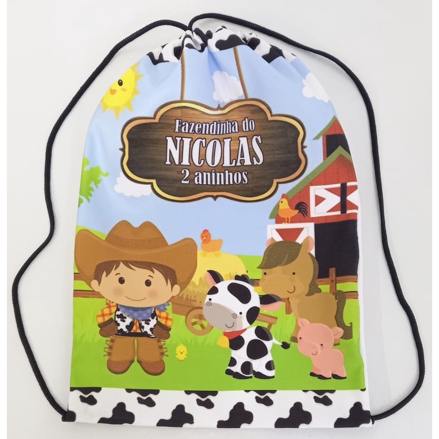 KIT 20 Mochilinhas FAZENDINHA - Sacochilas Personalizadas TODOS TEMAS, todas as finalidades (Com foto, logo e etc), Empresa, Lojas