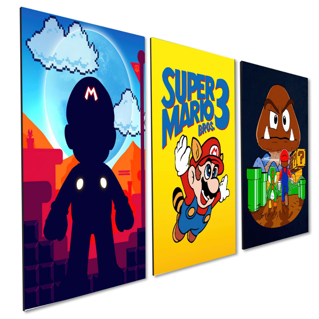 Quadros Decorativos Quarto Sala Super Mario Trio Kit 3 Peças 50X30 Premium