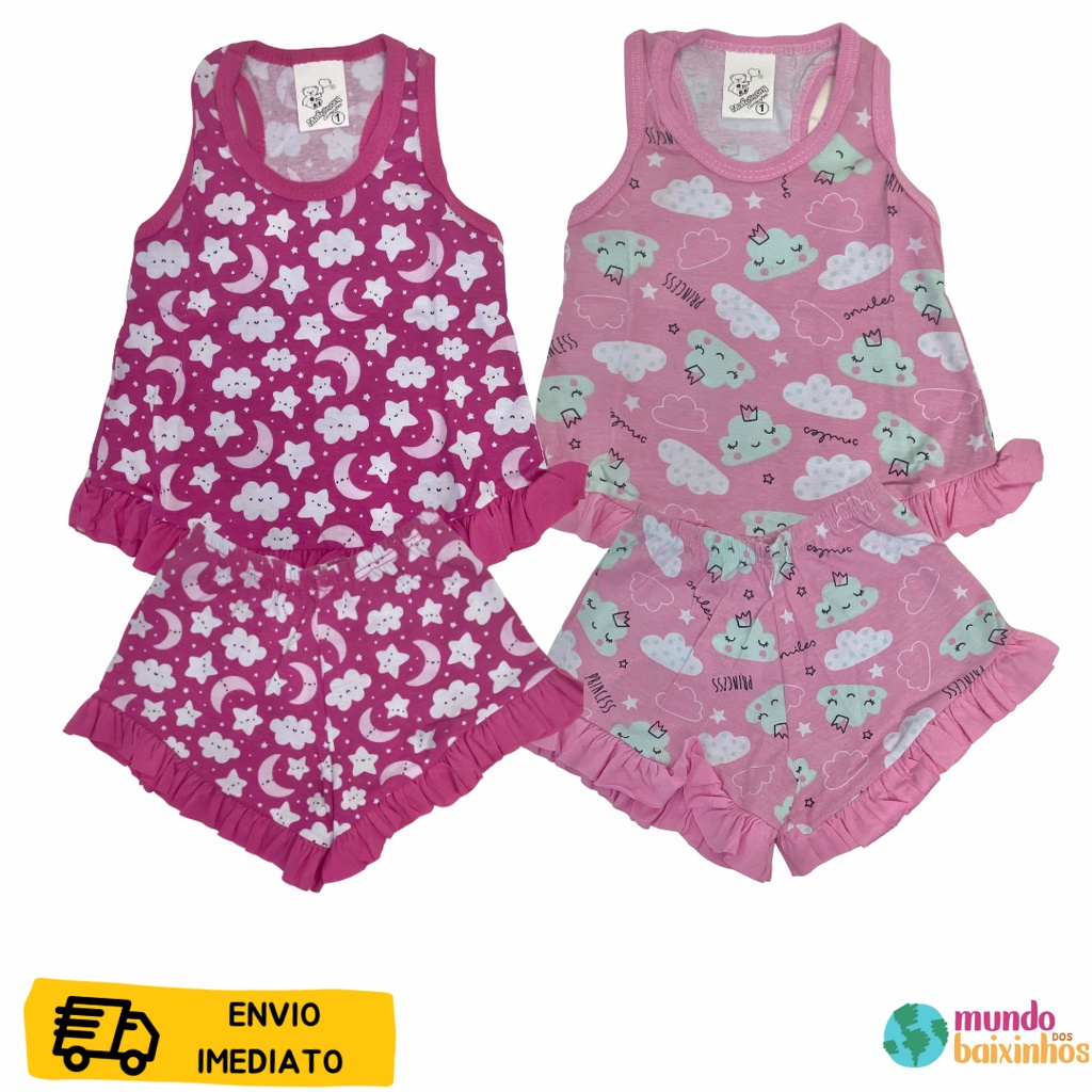 Pijama Menina Malha 100% Algodão Baby Doll Verão Confortável Estampado 1 ao 14 anos