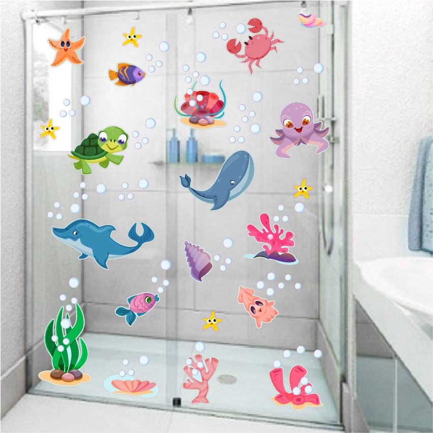 Adesivo Infantil Para Box De Banheiro E Parede Fundo Do Mar