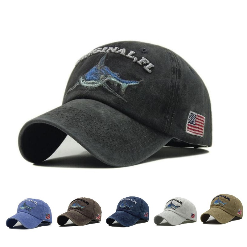 Boné De Beisebol Esportivo Unissex Bordado Tubarão Algodão Lavado