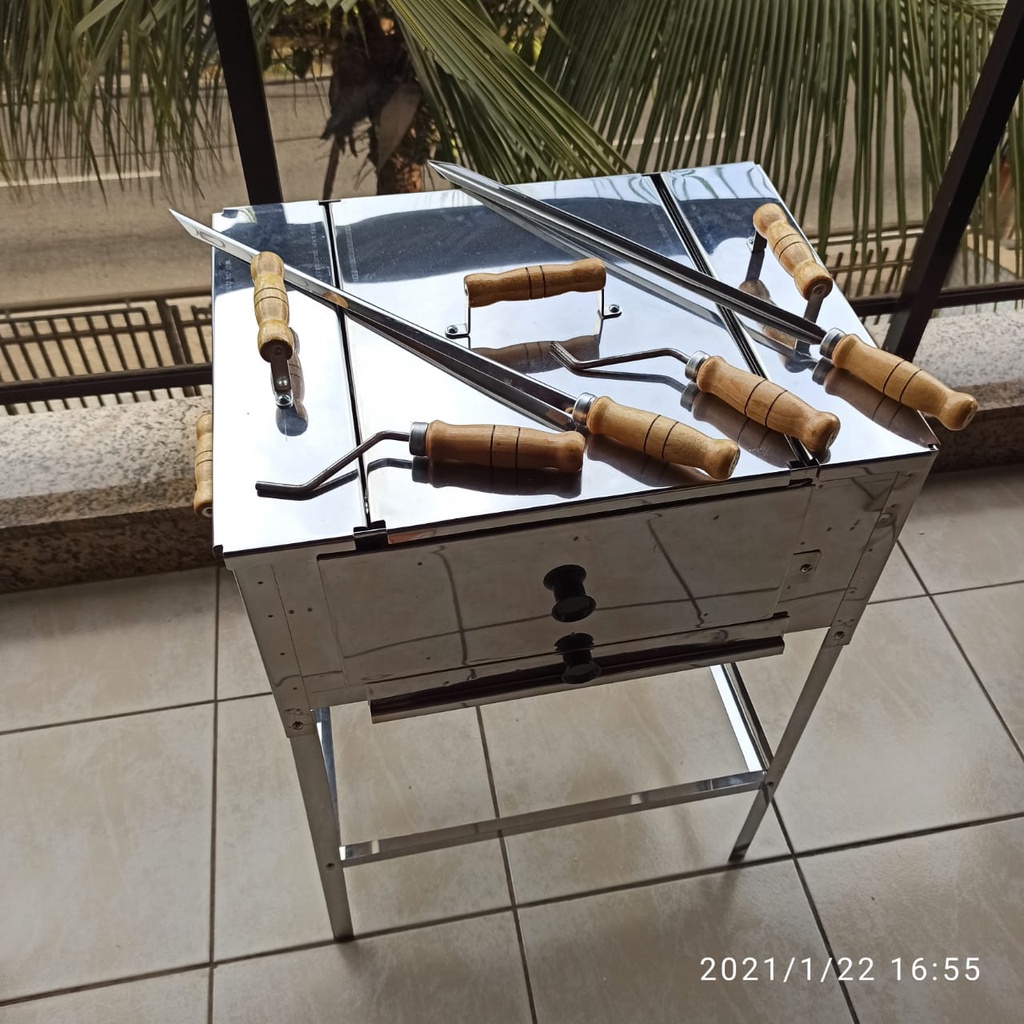 Churrasqueira Ecológica Sem Fumaça Apartamento Grande 3 Andares 2 Grelhas 3 Espetos Com Tampa a Bafo Bancada Aço Inox