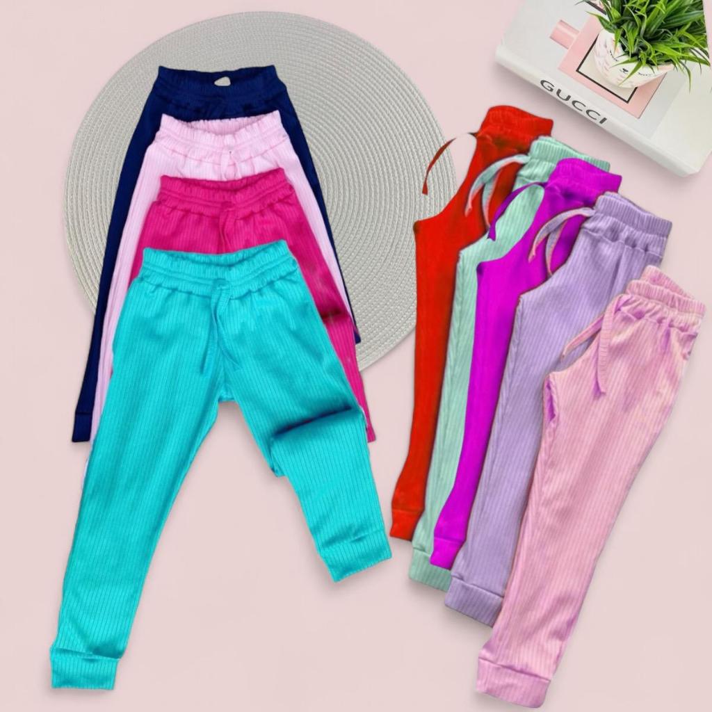 Kit com 3 Calças canelada infantil menina estilosa ENVIO CORES SORTIDAS