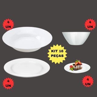 Aparelho Jantar 16 Peças 4 Prato Fundo+4 Raso Menu+4 Sobremesa+4 Cumbuca 390ML Vidro Duralex Temperado Redondo Kit Salada Sopa Opaline Nadir Saladeira Branco Almoço Figueredo