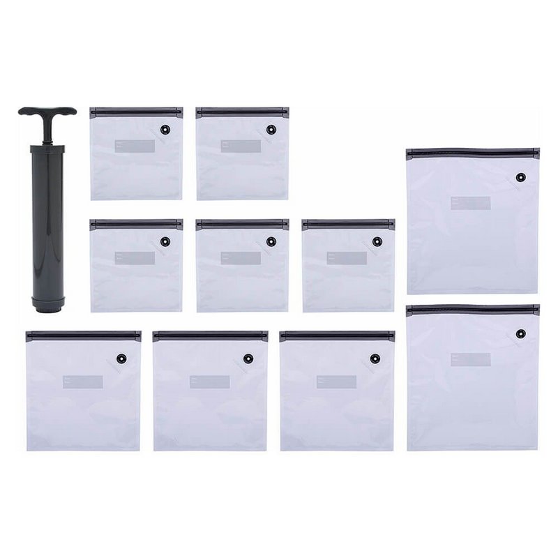 Kit com 10 Sacos a Vacuo + Bomba Manual Embalagem a Vacuo Reutilizavél Reservar Comida