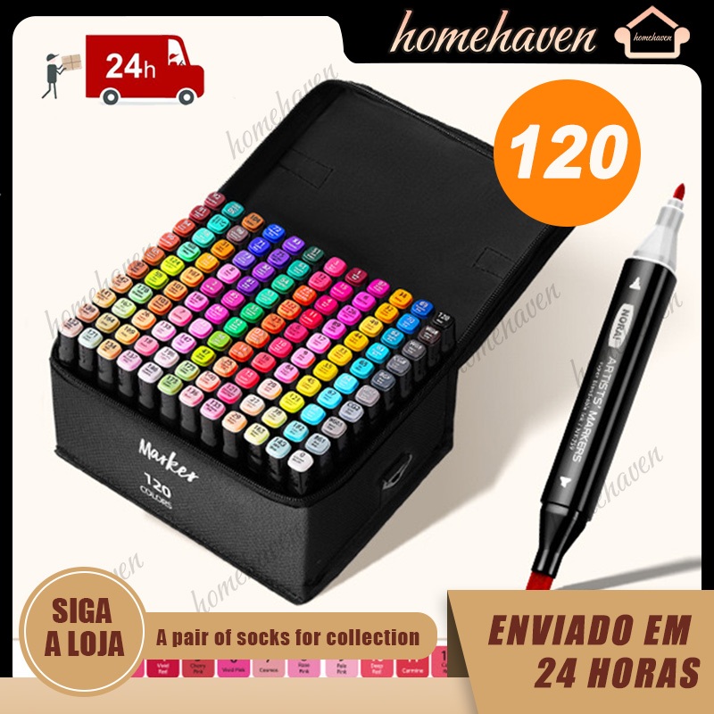 Kit 24/36/48/60/80/100/120 Cores Canetas Marcadora Com Ponta Dupla/Pintura De Arte Material Escolar Envio Imediato