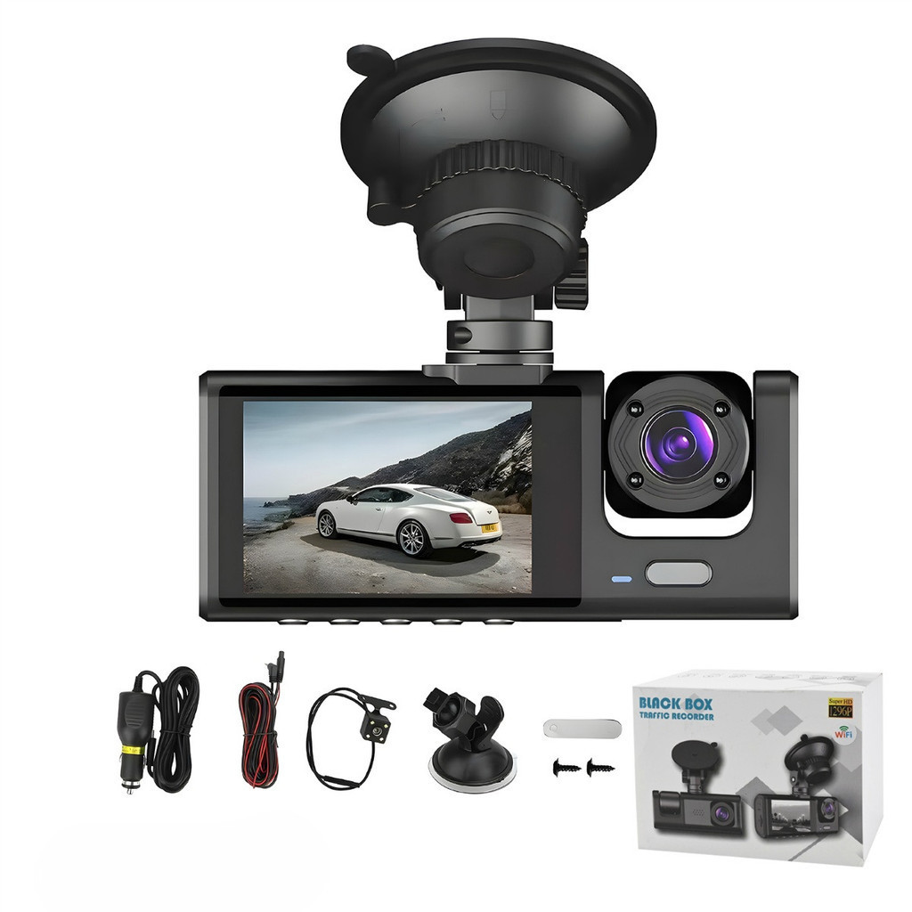 Dash Cam Dupla Full HD 1080P Wi-Fi (Frontal + Interior) + Câmera Traseira | G-Sensor | Loop | Modo Estacionamento