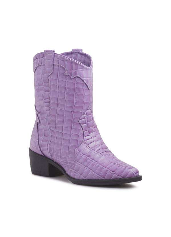 Via Miss - Bota Feminina Couro Western Salto Bloco Croco Bico Fino Violeta
