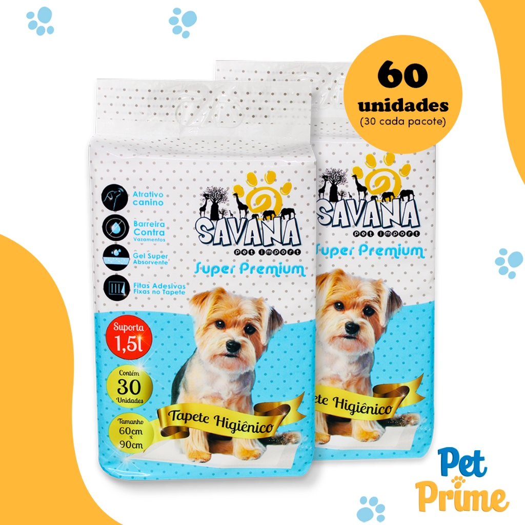Kit 2 Tapete Higiênico Cachorro Premium 60x90 cm 60 unidades Savana Pet