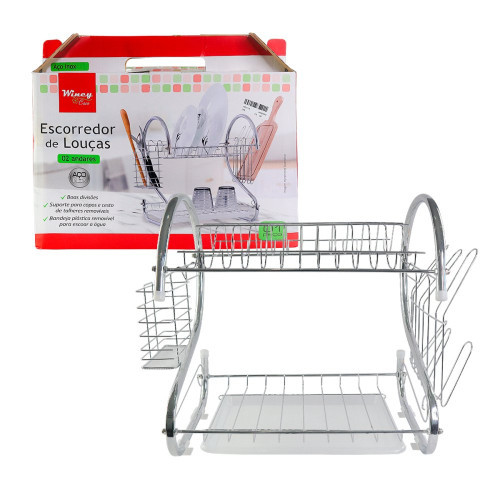 Escorredor de Pia de Louças Aço Inox Cromado Com Suporte de Talher e Copos 2 Andares Porta Talheres