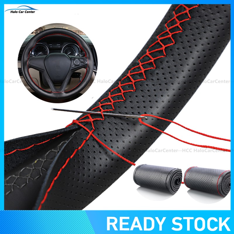 [Couro Capa Macia Para Volante De Carro Com Agulhas E Rosca