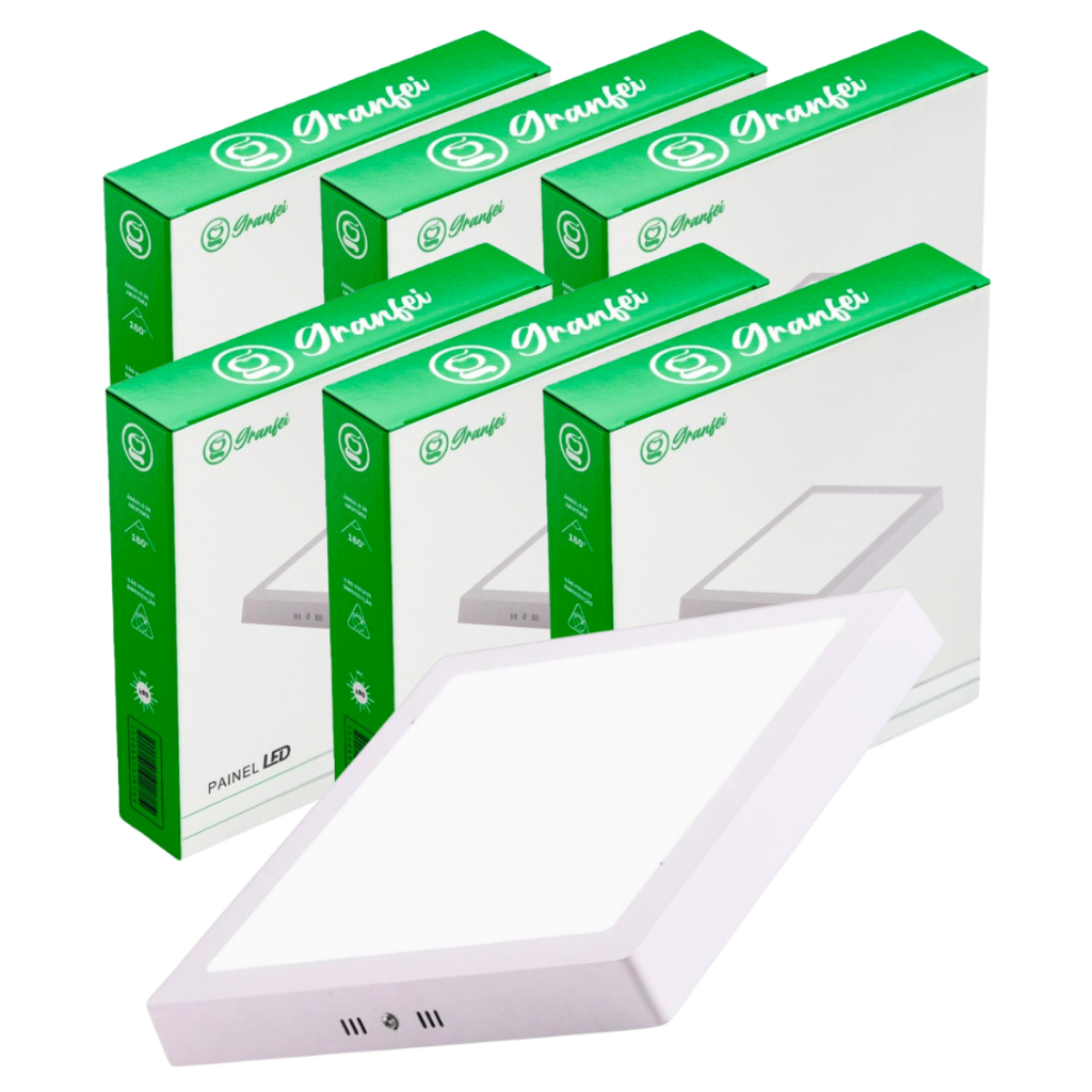 Kit 5 Luminária Painel Plafon Led 12W 18W 24W Sobrepor Embutir Branco Preto Quadrado Redondo Branco Frio Quente Neutro