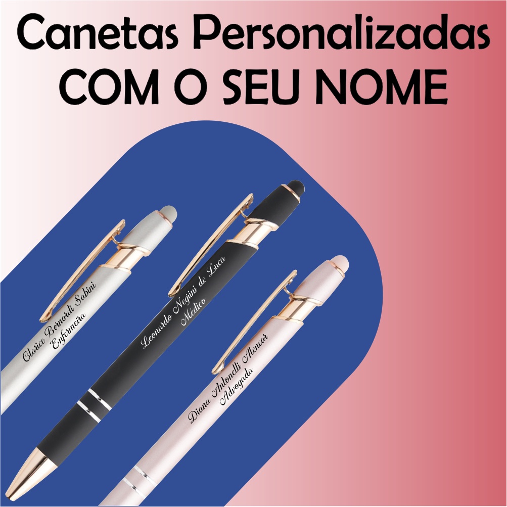 Kit 10 Canetas Metálicas Touch Personalizadas (Logo, Nomes, Frases)