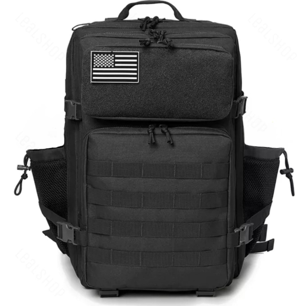 Mochila Militar Tática 50 Litros Grande Impermeável + Patch Preto Qualidade Premium
