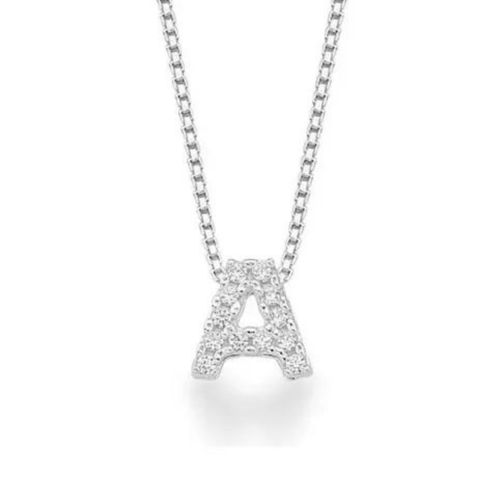 Colar Feminino Letra Inicial Cravejada Prata 925 Letrinha Mini