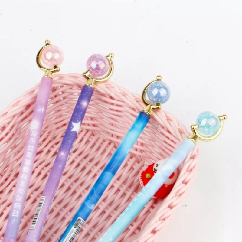 kit 4/8/12/24 Canetas Gel Ponta Fina Formado Pingente Globo "Cristal" - fofa