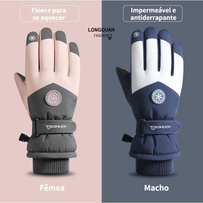 Luvas de inverno térmicas impermeáveis masculinas com tela sensível ao toque e bolso antiderrapante