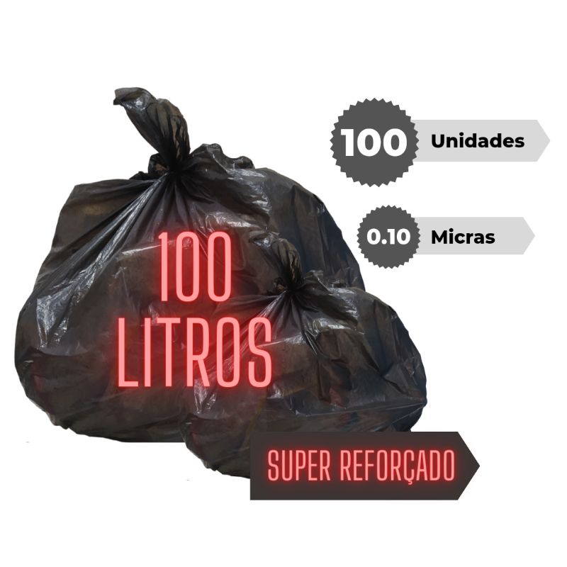 Sacos De Lixo 100 Litros Super Reforçado micra 0,10 Reciclável com 100 Unidades