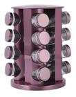 Porta Condimentos Rosa 16 Potes De Vidro Inox Base Que Gira