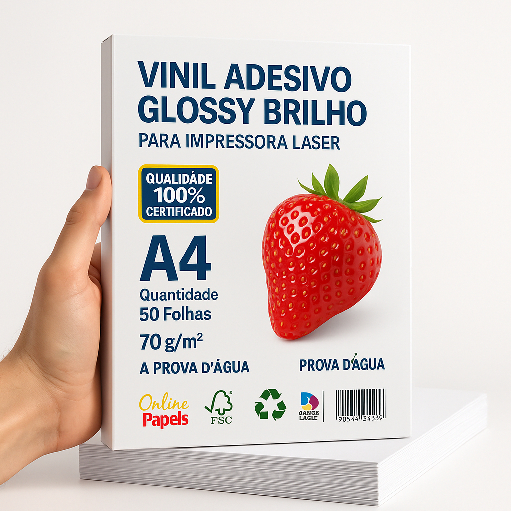 50 Folhas Vinil Adesivo Glossy Brilhante A4 p/ Laser 70g