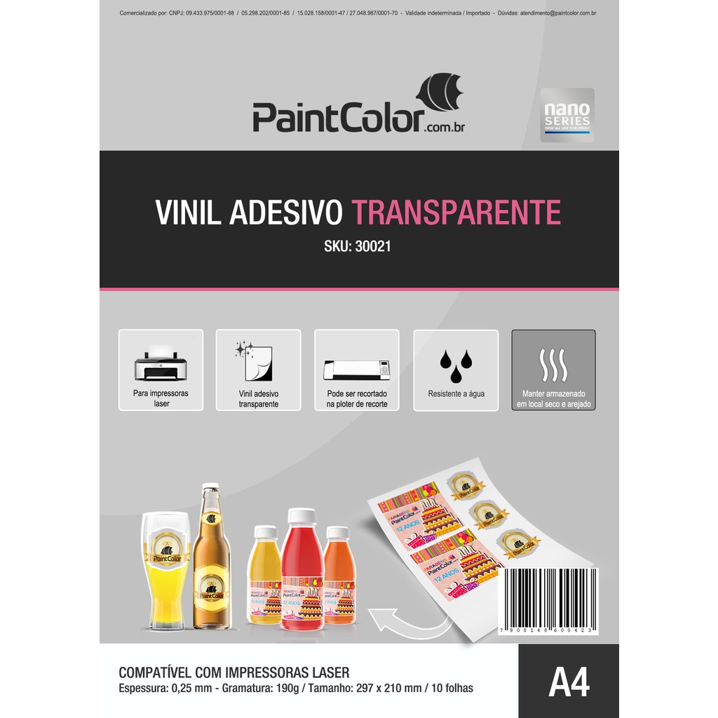 Vinil Adesivo 100% Transparente A4 impressora Jato de Tinta Resistente a água 10 Folhas MASTER PRINT