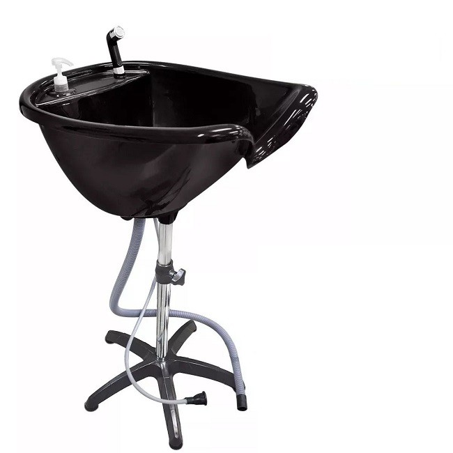 Lavatório Portátil Cuba Preto com Pé Fixo para Cabeleireiro Salão de Beleza - Santa Clara